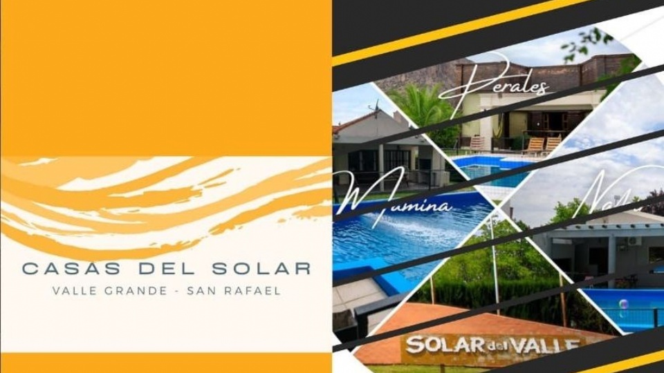 “Casas del Solar” es un complejo de chalets que se encuentra en Valle Grande en el barrio cerrado “Solar del Valle”. Este emprendimiento de la familia Salinas (Daniel, Eliana, Macarena y Diego) consiste en tres casas tipo chalets: “Mamina”, “Perales” y “Nahir”, las mismas poseen todos los servicios como calefacción a gas, estufas a leña, wifi, DirecTV, están totalmente amobladas y equipadas, además cuentan con el servicio de blanco y seguridad las 24 horas, piscina, parrilla propia y amplio parque.
