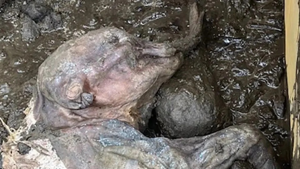 Junto a él había un cuerpo de un mamut lanudo bebé, congelado y conservado con su pelo y piel.