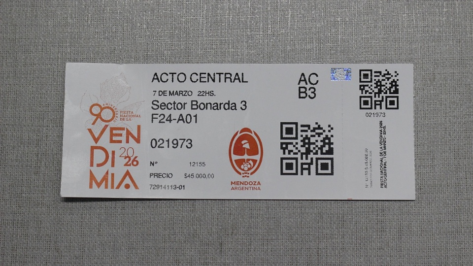 Se encuentran disponibles las entradas destinadas al departamento para la próxima edición de la Fiesta Nacional de la Vendimia, que se desarrollará el fin de semana siguiente en la provincia.