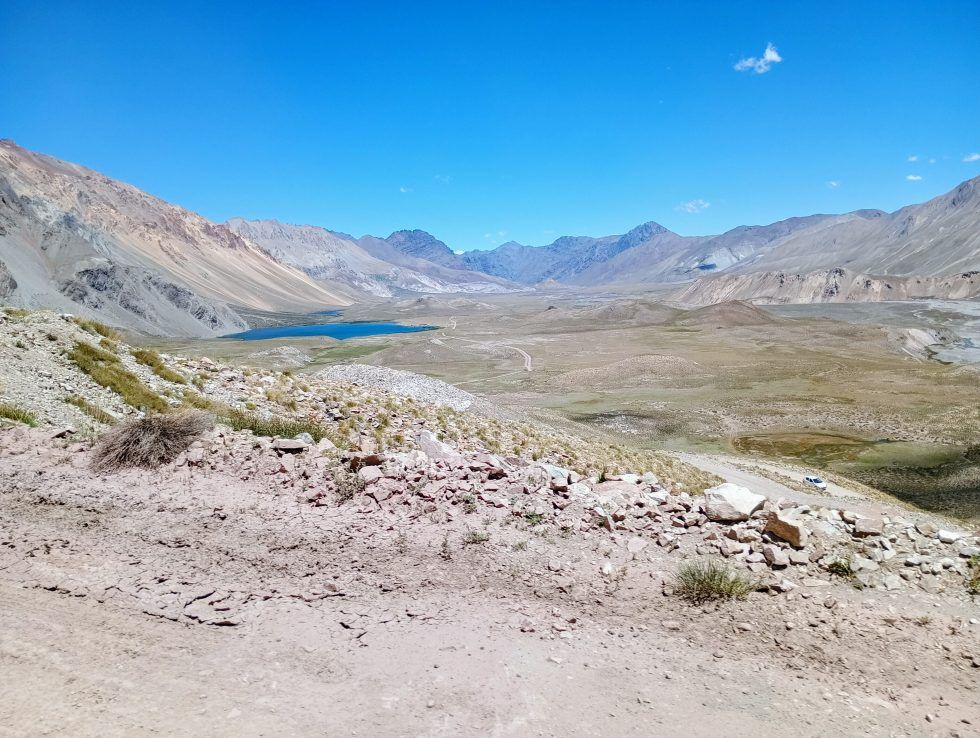 Poco después de Las Leñas, la Ruta Provincial 222 trepa unos 18 kilómetros sobre suelo natural hasta un mirador ubicado a casi 2.700 metros de altura. En ese punto, aparece a la vista una postal única: 500 metros en picada, en panorámica, está Valle Hermoso, a 2.200 metros sobre el nivel del mar, en Malargüe.