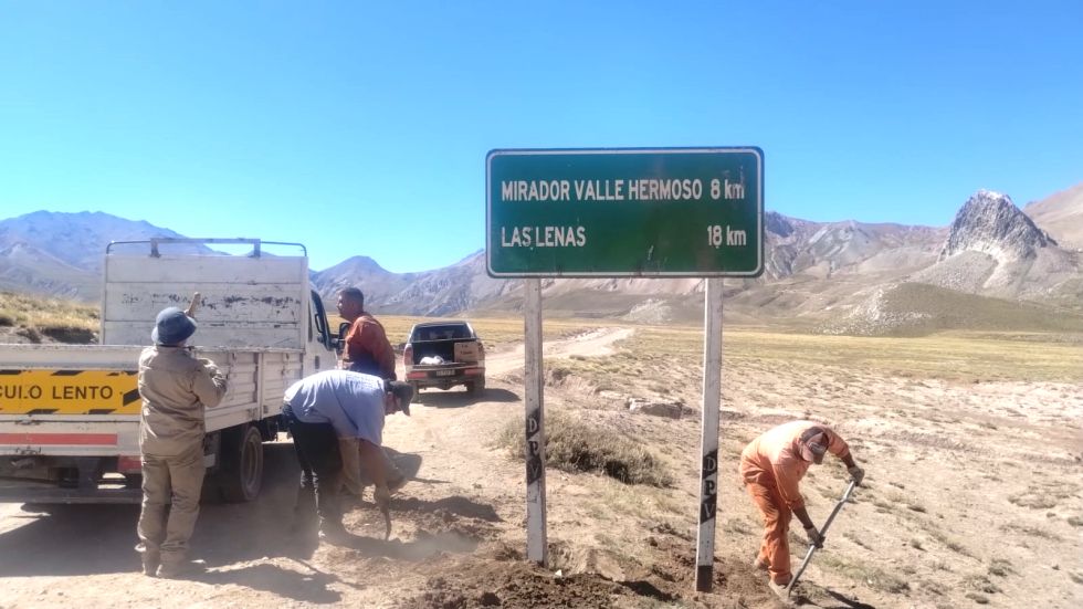 La DPV rescató el camino a Valle Hermoso, cuyo tramo de suelo natural en la RP 222 se inicia después de Las Leñas. Este mes se le incorporó cartelería vial preventiva.