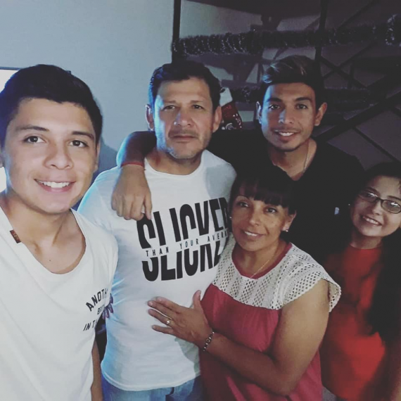 El Mono Juncos (de negro) junto a su familia y su padre Miguel Ángel.