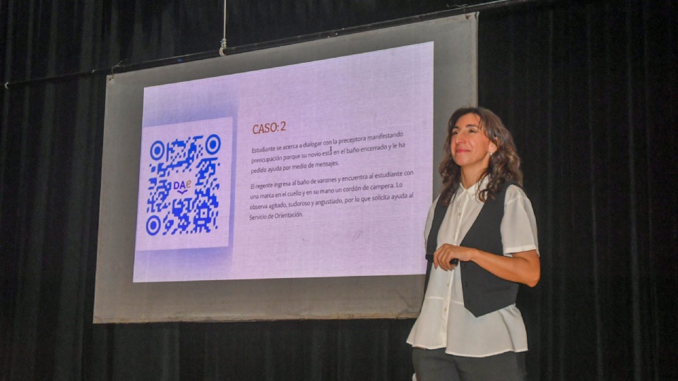 Carina Gannam, directora del Acompañamiento Escolar de la DGE, estuvo presente en esta jornada y dijo que se inicia un ciclo en toda la provincia para brindar instrumentos y herramientas en torno a la salud mental, entendiendo que la función del servicio no es solo acompañar desde lo pedagógico. "En todas las situaciones actuales que acontecen en la escuela, tenemos que tener preparados a los equipos técnicos para afrontarlas y trabajar en conjunto con la Dirección de Acompañamiento Escolar (DAE) y con las familias", afirmó.