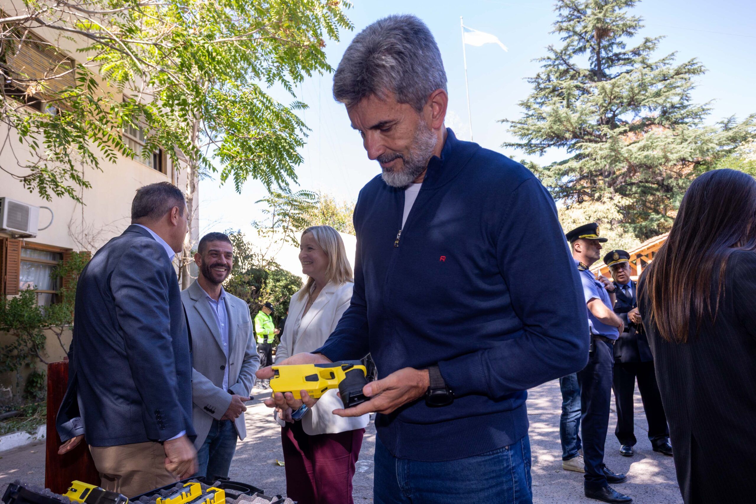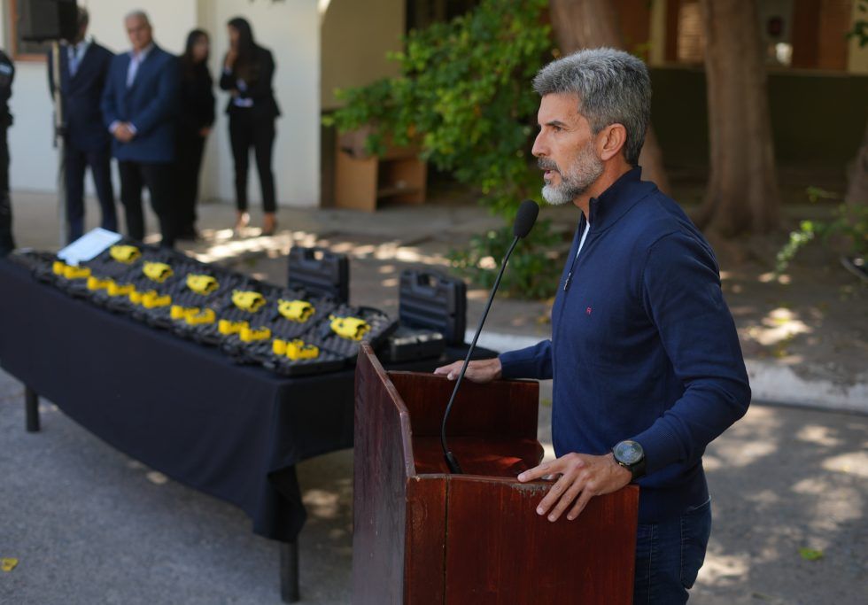 Preventores de la Ciudad de Mendoza recibieron las primeras 15 pistolas Taser 7 (de 30 que serán en total). Fue en un acto del que participó el intendente Ulpiano Suarez junto al gobernador, Alfredo Cornejo; la vicegobernadora, Hebe Casado; la ministra de Seguridad y Justicia, Mercedes Rus; y autoridades provinciales y municipales.