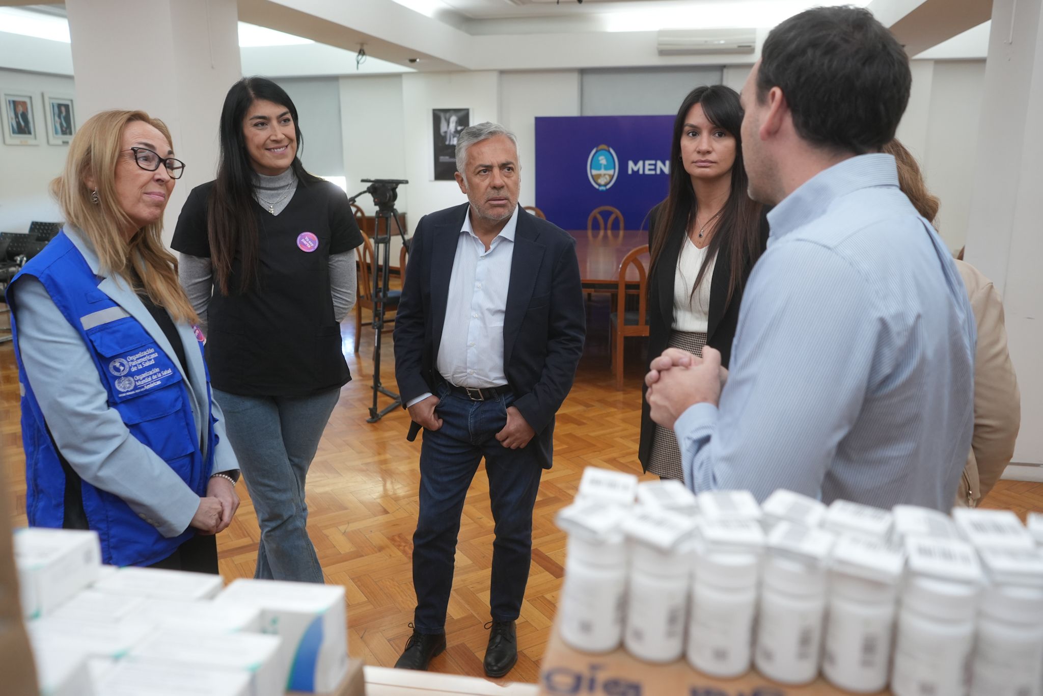 El Gobernador Alfredo Cornejo encabezó este sábado en la Casa de Gobierno la recepción de un nuevo envío de medicamentos importados desde India, en el marco de la estrategia provincial para optimizar recursos y ampliar el acceso a tratamientos. Durante la jornada, además, firmó un acuerdo de cooperación con la Organización Panamericana de la Salud (OPS) y recorrió el operativo Autovac, desarrollado en la playa oficial como parte de la Semana de Vacunación de las Américas.