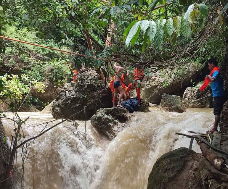 Poco más de una hora después, fueron encontradas las primeras víctimas fatales, dos mujeres birmanas murieron al chocar contra rocas en el tercer nivel de la cascada.