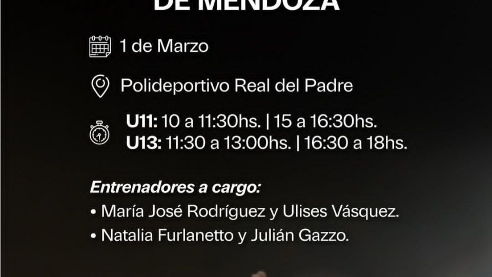 Este domingo en el Polideportivo de Real del Padre se realizará un evento preselectivo para conformar los seleccionados mendocinos de básquet durante la temporada 2026.
