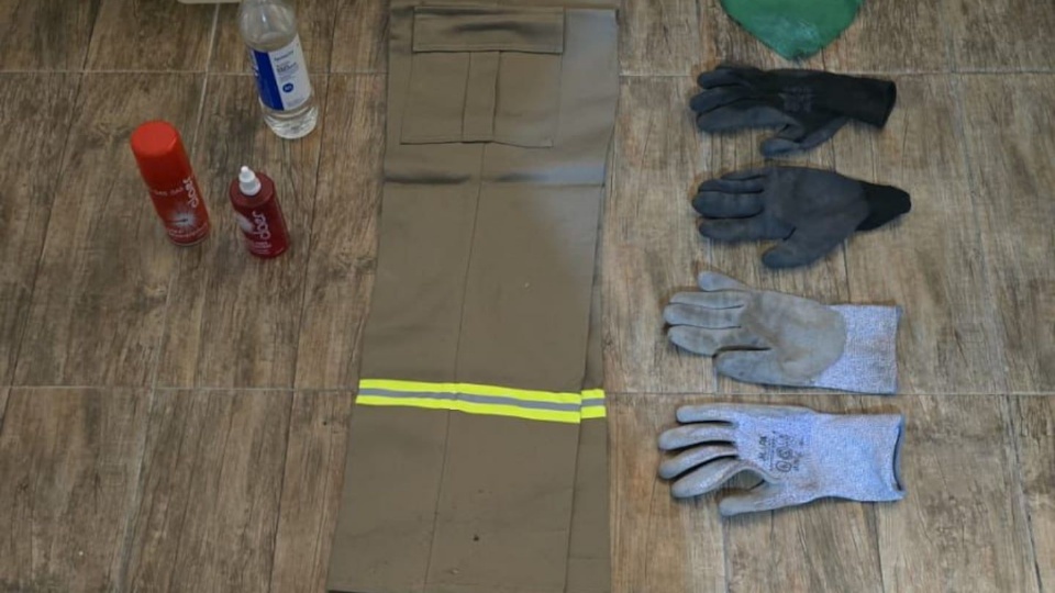 Durante el allanamiento en la casa de Tolomeo, los efectivos secuestraron bidones con combustible, la ropa que habría usado durante el ataque, un pañuelo verde, guantes térmicos y material vinculado a grupos anarquistas.