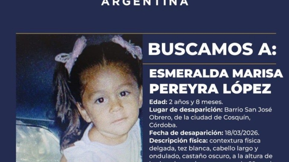 La mamá de Esmeralda Pereyra López, la niña de 2 años que está desaparecida en la provincia de Córdoba y por el que se activó el Alerta Sofía, sospecha que a su hija se la llevaron y que podría estar vinculado un circo que tuvo base cerca de su vivienda en el barrio San José Obrero, en la ciudad de Cosquín.