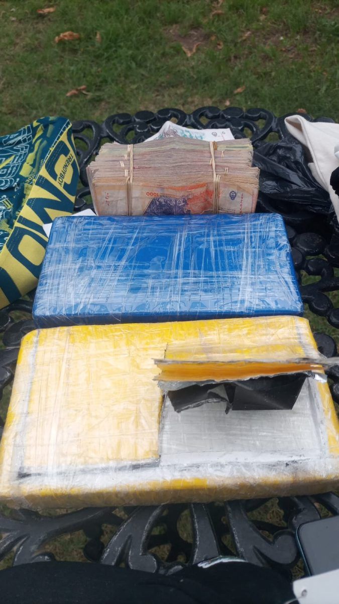 La investigación continuó con un allanamiento en la cabaña donde se hospedaban, en calle Sardini Sur s/n, donde se secuestraron prendas de vestir nuevas, cuatro teléfonos celulares, dinero en efectivo, bebidas y dos ladrillos de sustancia blanquecina que, tras ser analizada, resultó ser cocaína con un peso superior a los dos kilos. En el lugar, también se incautó un Ford EcoSport.