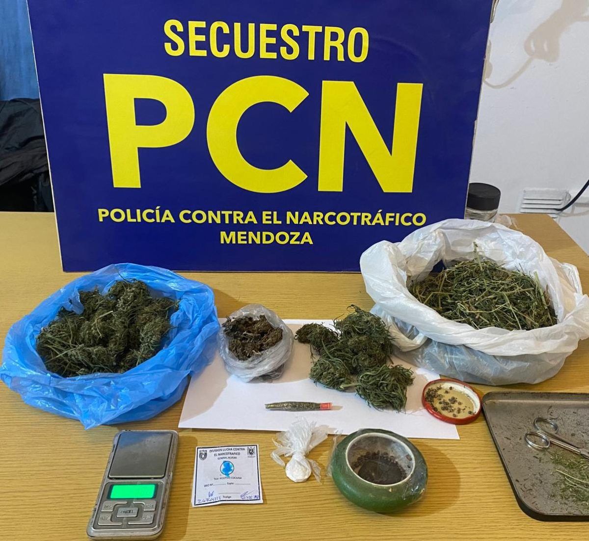 En el lugar se hallaron frascos con cogollos de marihuana, una bolsa con hojas secas, un envoltorio con cogollos y un cigarrillo artesanal y 147 semillas. Además, se secuestraron nueve plantas de marihuana, con un peso total superior a 37 kilos.