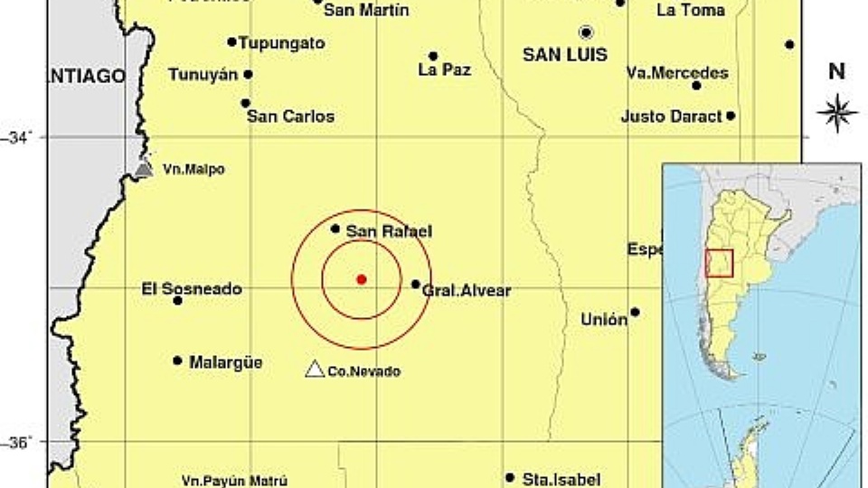 Esta mañana de lunes, pasadas las 9, un sismo de magnitud 3 fue registrado con epicentro a 41 kilómetros al sureste de la ciudad de San Rafael y 50 kilometros al Este de El Nihuil, más precisamente en el distrito Las Malvinas.