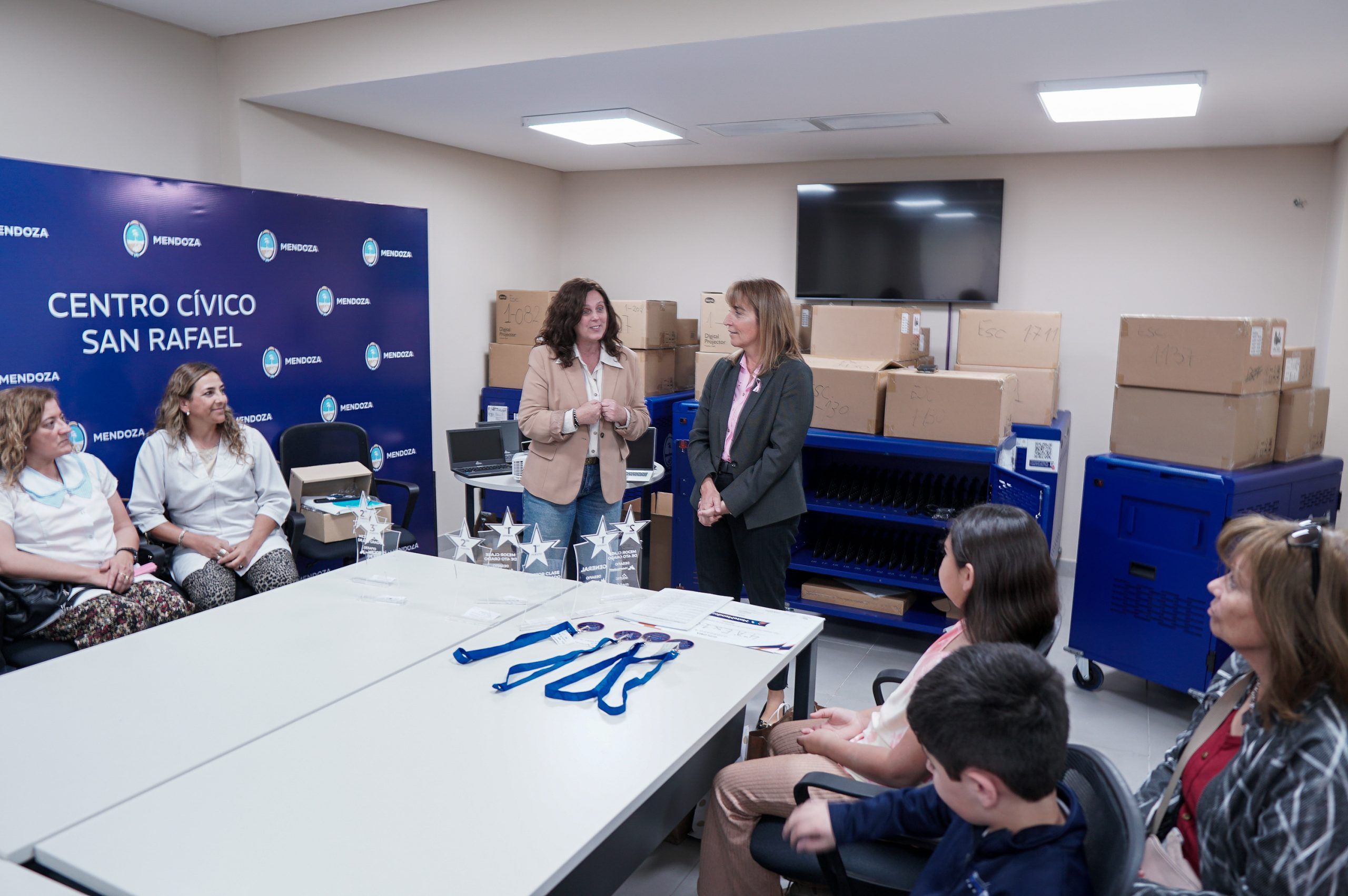 El Centro Cívico de San Rafael fue escenario para que la Dirección General de Escuelas entregara, hoy, aulas digitales móviles (ADM) a siete escuelas primarias departamentales. De este modo, cada institución recibió 30 netbooks para estudiantes, notebook para docentes, pantalla digital y proyectos multimedia.