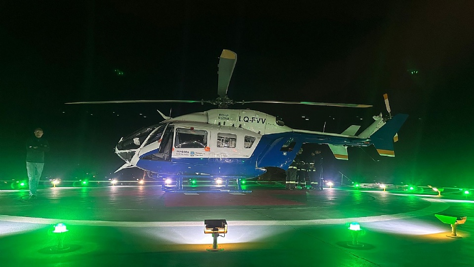 El operativo, que incluyó personal del hospital, bomberos, efectivos policiales y personal sanitario aéreo, se concretó pasadas las 23. La nave de la Policía de Mendoza aterrizó en el helipuerto del nosocomio sanrafaelino a las 23:15 y despegó con destino a Mendoza a las 23:40.