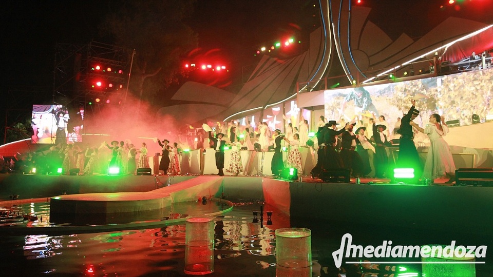 La apertura estuvo a cargo de Los Trovadores de Cuyo y Franco Luciani, quienes aportaron el clima tradicional y folclórico a la previa. Luego, ante miles de personas en las gradas, la flamante representante vendimial 2026, Azul Antolínez, anunció el inicio del espectáculo central, dando paso a una puesta en escena que volvió a deslumbrar por su despliegue artístico y tecnológico.