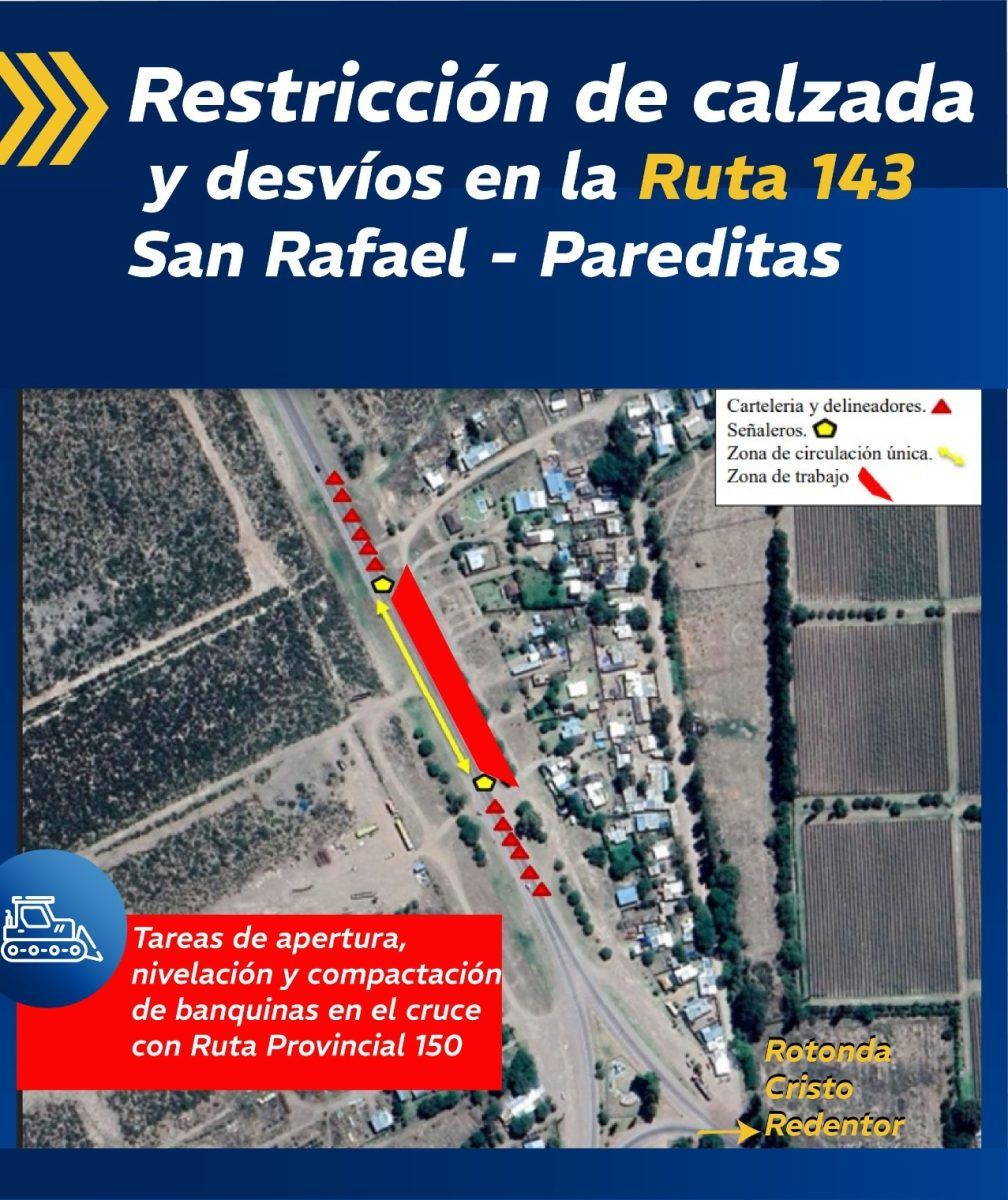 La recuperación de la Ruta Nacional N° 143 suma un nuevo punto de intervención estratégica en el sur mendocino. A través de la utilización de recursos provenientes del Fondo del Resarcimiento, la empresa José Cartellone Construcciones Civiles S.A. inició las tareas de apertura, nivelación y compactación de banquinas en la zona de intersección con la Ruta Provincial N° 150.