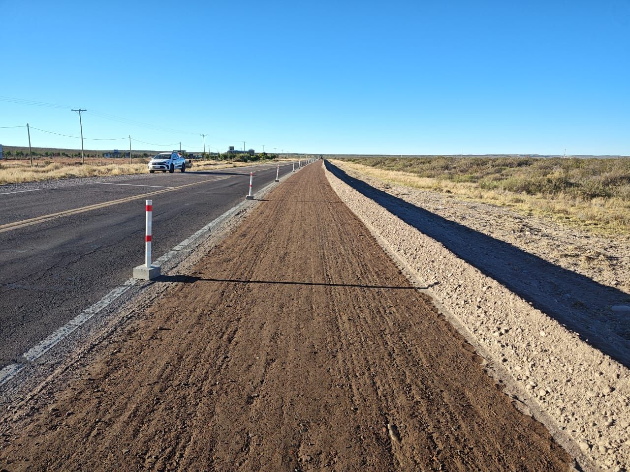 Complementariamente, en la Sección 2 se ejecutan tareas de refuncionalización a la altura de la intersección con la Ruta Provincial 150. Allí, la empresa José Cartellone Construcciones Civiles SA trabaja en la nivelación y compactación de banquinas bajo un esquema de tránsito asistido.