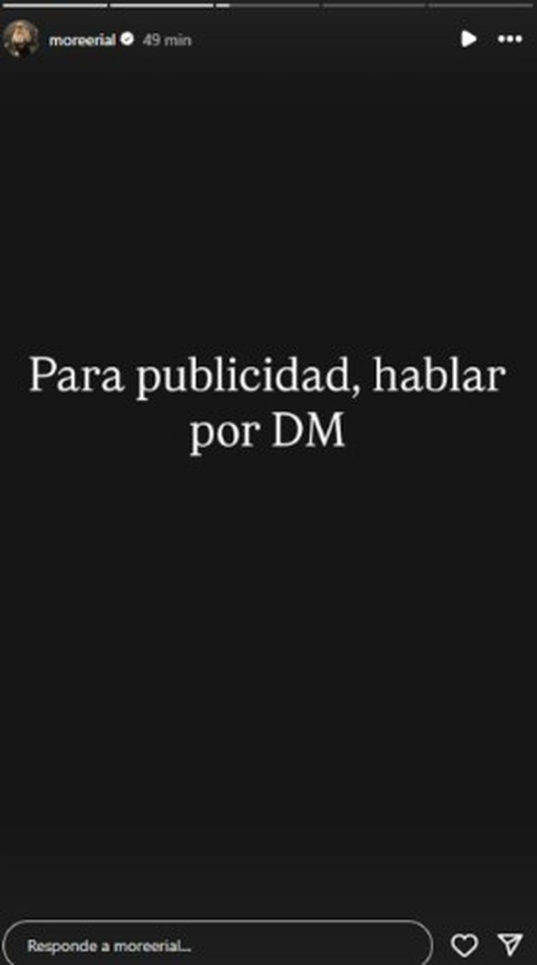 "Aviso: debido a la situación actual de More Rial pedimos a quienes tenían fechas reservadas para pauta publicitaria que se contacten a través del siguiente enlace. De esta manera podremos reorganizar y dar continuidad a las acciones de marketing. Equipo de marketing y nuevos medios", dice otro mensaje en su cuenta.
